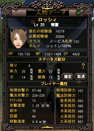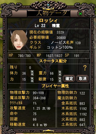 素の状態だと物理さがったかなぁ…という気もしたのですが、自分支援したら結構あがってましたw