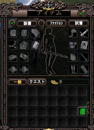 店売り装備も、クエ報酬装備もすべて空っぽ。