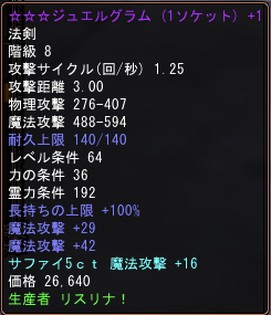 70になったら分解する武器ですが、精錬があまりにも出来るので…ポチポチ押すのが楽しくてクリックしていたらあっというまに+5になってしまい○| ̄|_